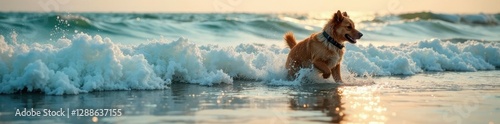 Chapoteando en la orilla del mar con velocidad, velocidad, viento, canino