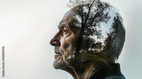 Peaceful Reflection of an Older Man - A thoughtful older man, symbolizing wisdom, serenity, nature's connection, inner peace, and the passage of time