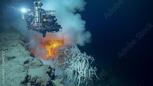 深海のブラックスモーカー周辺で生命活動を記録する探査機