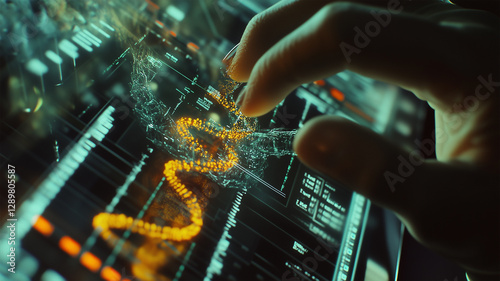 CRISPRツールでDNA編集を行う科学者の手元、遺伝子工学の未来を象徴するシーン