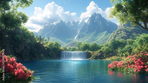 creation genesis god planted a garden in a place called eden paradisiacal garden with diverse trees and plants and majestic peaks