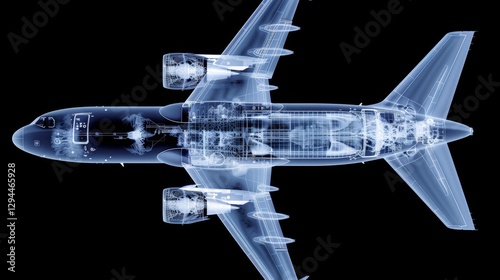 Futuristic airplane design with transparent x ray view of complex interior and structure details