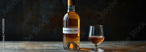 Modern non-alcoholic Chardonnay bottle with glass in a professional setting