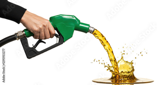 Isolated Gasoline Pump Nozzle, Fueling and Splash