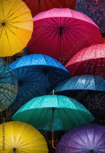 Paraguas de moda en colores vibrantes, exhibidos artísticamente, accesorios para días lluviosos convertidos en declaraciones de estilo