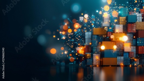 Dynamic cargo shipment logistics global trade hub abstract visualization modern industrial environment close-up viewpoint concept of globalization impact