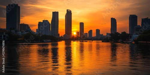 City Sunset Over River