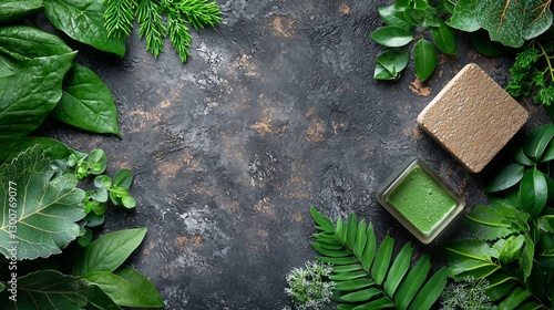 Green Leaves and Natural Elements Surrounding Cosmetic Products