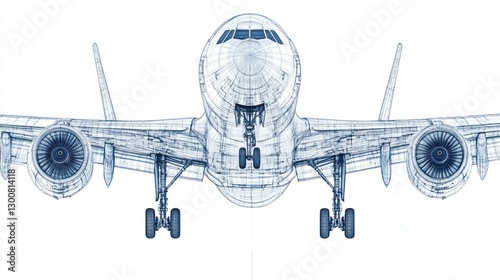 A detailed blueprint illustration of an aircraft viewed from the front.