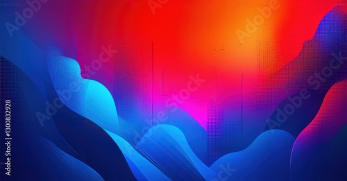 High contrast futuristic abstract gradient background fiery red fading cobalt blue fine grain noise texture bold geometric formations sharp neon accents bright colorfu