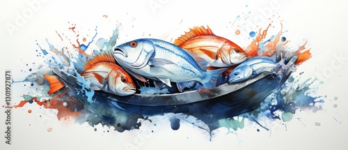 Watercolor National Fisheries Day Artwork with Colorful Fish