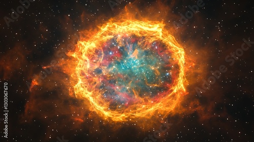 A close-up of a luminous nebula with colorful gas clouds swirling around