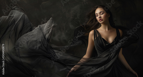Tajemnicza kobieta w czarnej sukni.