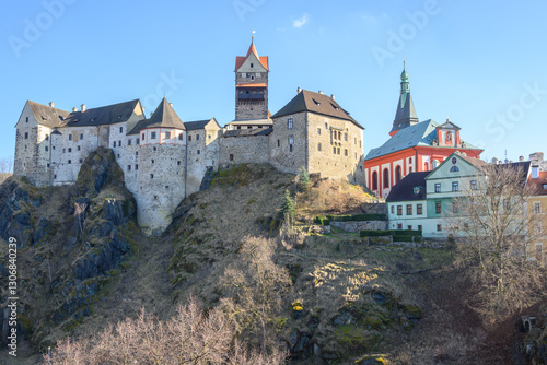 Loket Castle, a 12th-century gothic castle in the Karlovy Vary Region in Czech Republic.