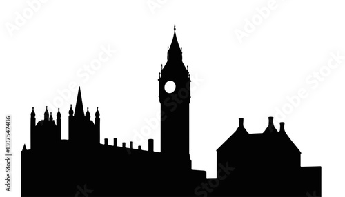 Silhouette of historic buildings with a clock tower