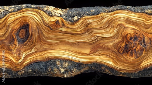 Wood Cross Section, Detailed Grain Pattern