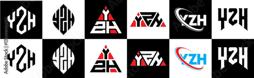 YZH letter logo design in six style. YZH polygon, circle, triangle, hexagon, flat and simple style with black and white color variation letter logo set in one artboard. YZH minimalist and classic logo