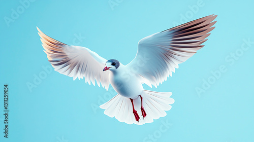 an elegant black-headed gull in flight against the clear blue sky