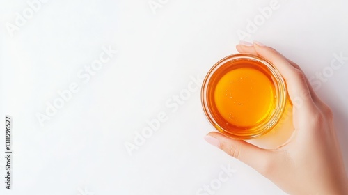 banner material, posters, and materials for making presentations. honey in a cup on a white background for text space