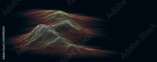 Collisional Mountain Chains formed by the collision of tectonic plates. Concept of mountain-building (orogenesis). Copy Space. Isolated on a black background. 3D illustration.