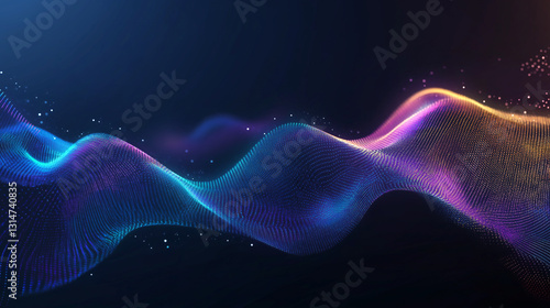 Abstract Wave of Digital Brilliance: A mesmerizing visual representation of a flowing, vibrant, and luminous digital wave with a gradient color palette, depicting data, technology.