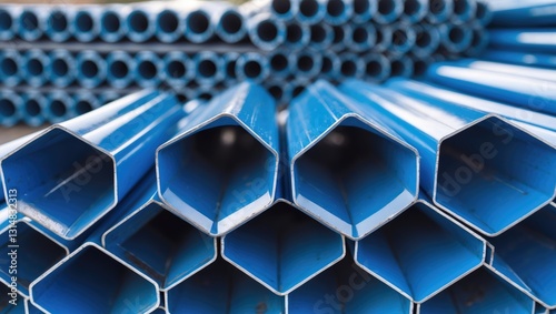 steel background, steel construction, construction materials for building, pile of blue steel pipes