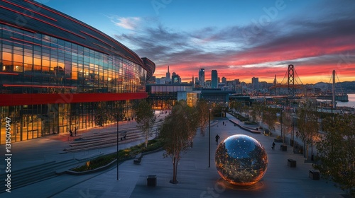 Chase Center: Modern Arena Experience with Seeing Spheres Art Installation in Vibrant San Francisco Cityscape