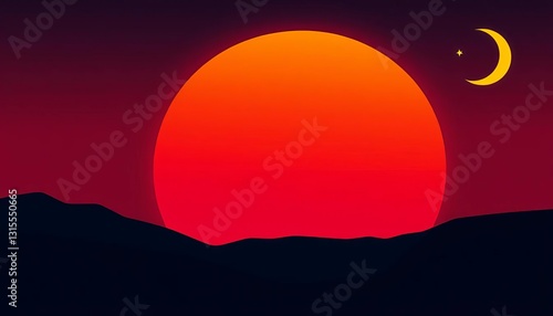 Sunrise, sunset, crescent moon, and star silhouettes Vector icons for day and night, weather, time, illustration, forecast