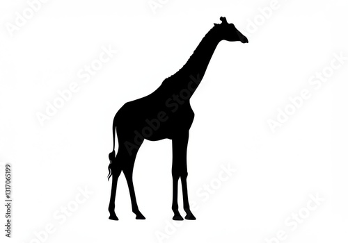 silhouette, giraffe, black and white, side view, simple, minimalist, graphic design, vector art, tall neck, long legs, safari animal, African wildlife, clean lines, iconic shape