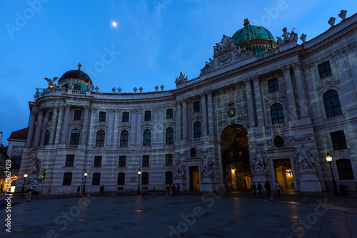 Famous hofburg palace in vienna in the evening, seen from michaelerplatz, austria