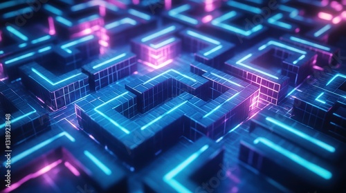 Abstract neon glowing maze pattern.