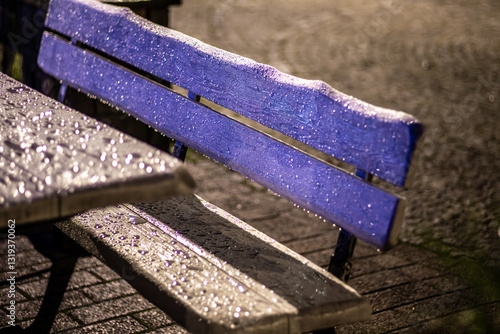 deszcz w nocy i deszczowa pogoda z mokrą ławką