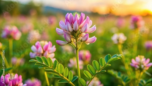 Close-up of herb astragalus plant in field, close-up, astragalus, close-up, astragalus, landscape