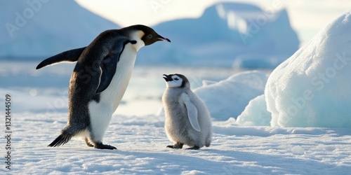 Penguin parenting interaction antarctic ice wildlife photography frozen landscape close-up view nurturing behavior