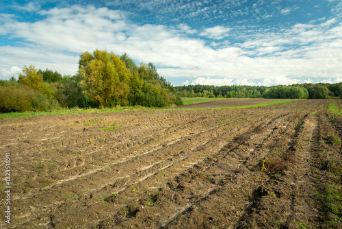 A ploughed field in front of the forest