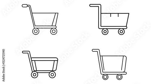 Shopping Trolley Icons: Minimalist Cart, Basket, and Outline Designs