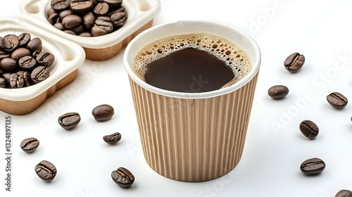 Kopi dalam cangkir dengan biji kopi isolated on white background. American food