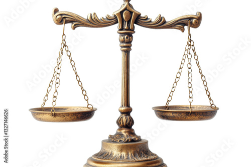 #1234600450Ornate golden balance scale with intricate design isolated on white background