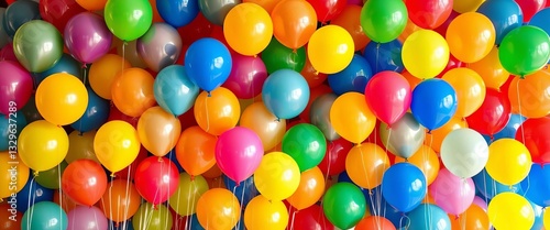 A vibrant, celebratory backdrop of many colorful balloons, design, fiesta