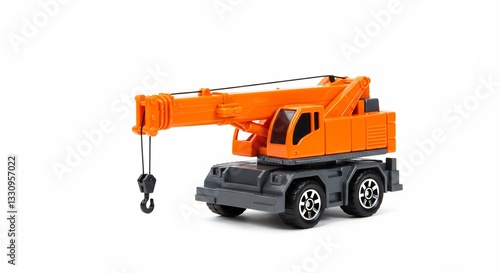 鮮やかオレンジ色クレーン車模型 力強く輝く 精密な造形. AI Generated