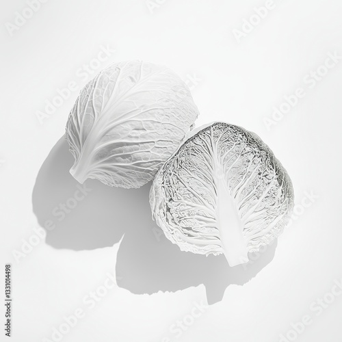 Monochrome Still Life of Two Cabbages on White Background