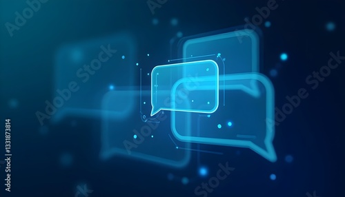 A digital illustration featuring glowing chat bubbles on a blue background, symbolizing communication and online interactions.