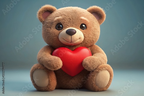 A Cuddly Brown Teddy Bear Gently Holding A Vibrant Red Heart, A Symbol Of Unconditional Love And Heartwarming Affection, Against A Soft Blue Backdrop