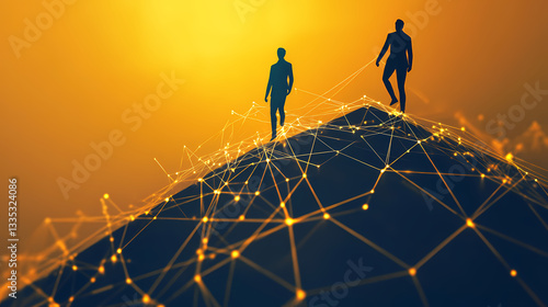 A stylized figure climbing a rising graph, symbolizing growth and success in business or personal achievement. Networked Growth. Illustration