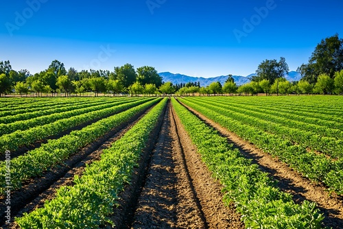 A field of drought-resistant crops grown using sustainable farming practices to adapt to changing climate conditions Clear skies