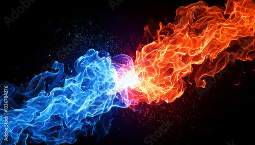 赤と青の炎がぶつかるエネルギーの爆発。generative ai