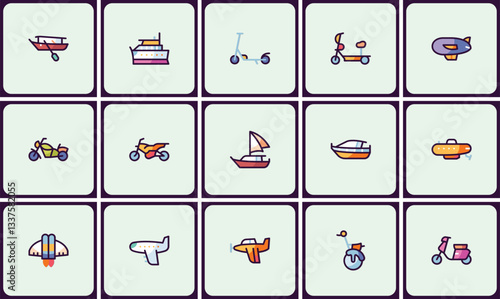 Transportation vector icon collection featuring diverse vehicle illustrations
