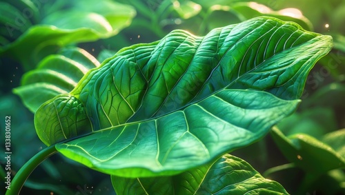 Leaf texture close-up. Macro photography of leaf vein patterns. Macro view of green leaf cells. Close-up shot of a leaf.