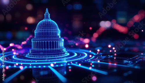 Digital representation of united states capitol building, symbolizing stocks and global economy