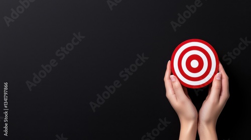 Hands holding a target symbol against a dark background, representing goals and focus.